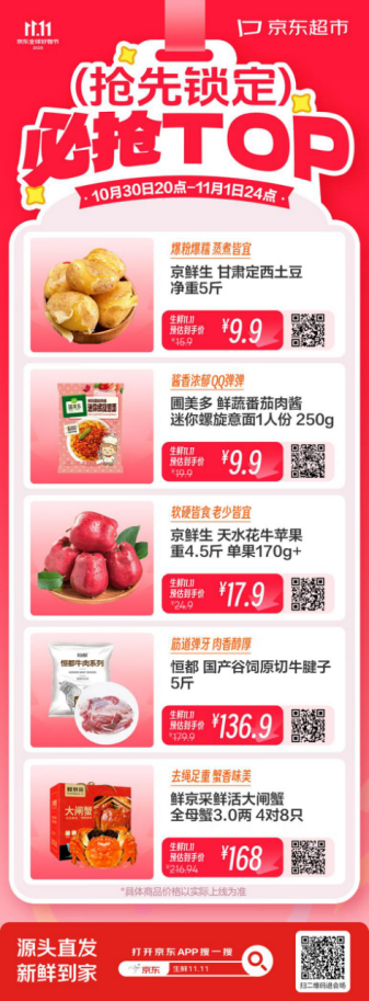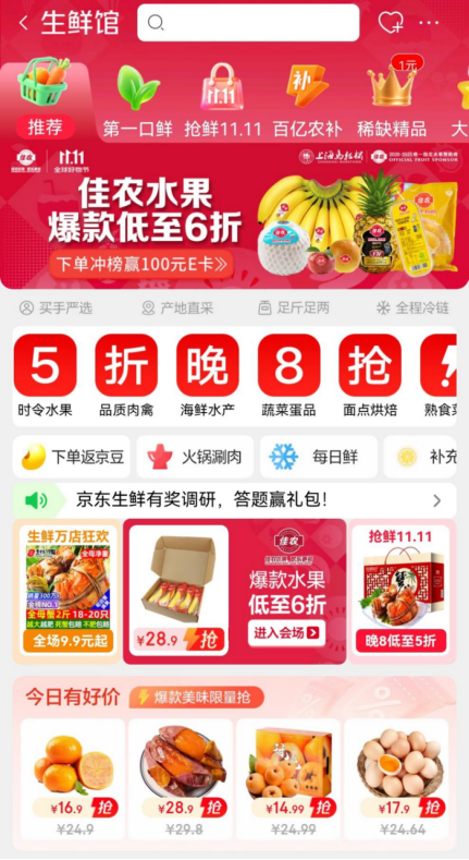 除了超大力度的优惠活动,今年11.11期间,京东生鲜通过源头直发模式,为消费者带来了多款热销单品及品类爆品,不仅品质优质,价格也极具竞争力。