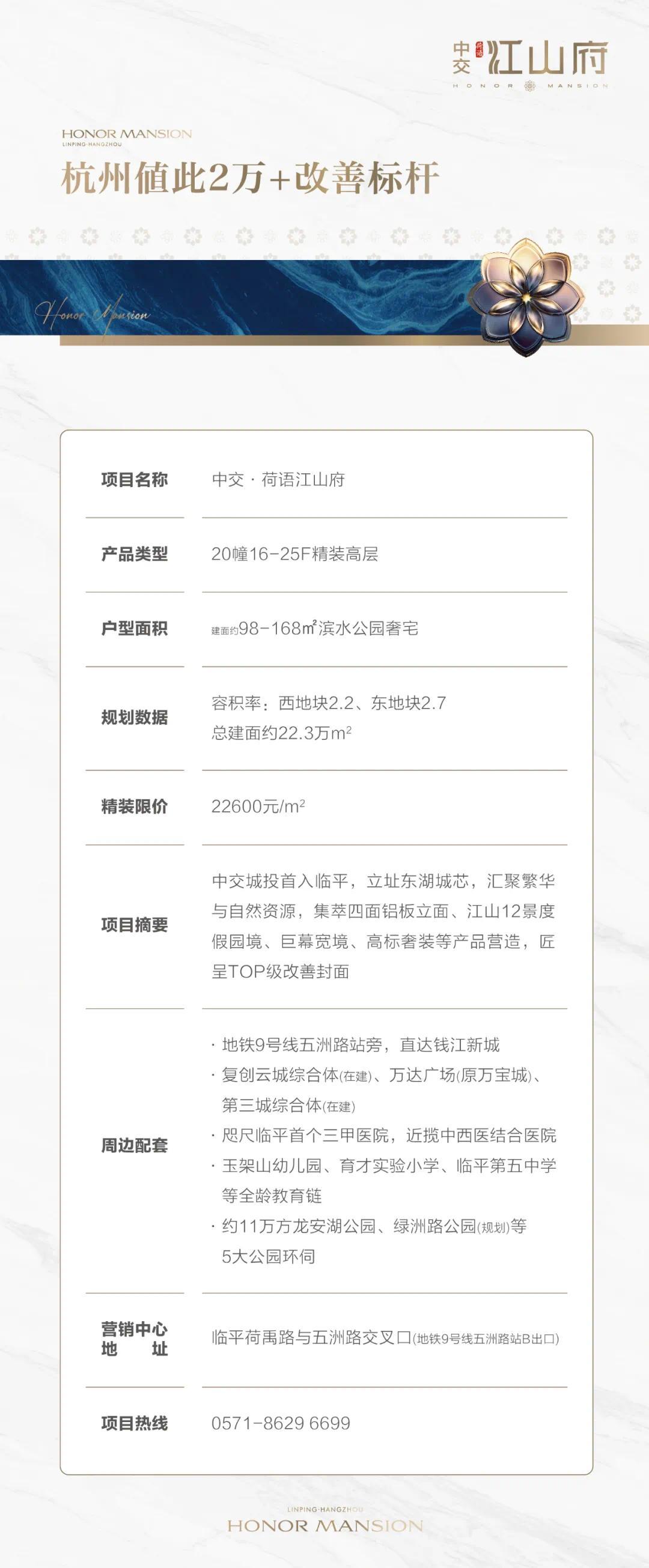 免责声明:本项目研发企业为杭州中宜杭城置业有限公司,本资料为要约邀请,相关联的内容不排除因政府相关规划、规定及开发商未能知晓的原因发生明显的变化,本公司保留对宣传资料修改的权利,敬请留意最新资料,对项目旁边的环境、交通、教育、商业及其它配套设施的介绍,旨在提供相关信息,不意味着本公司对此作出承诺。本资料中所有资料,包括项目效果图、插图、文字描述等仅供参考识别或分享交流之用,买卖双方的权利及义务以双方签订的《商品房买卖合同》及其附件约定为准。本项目推广名为“荷语江山府”,核准地名为“荷语江山府”。预售证号:临平房预许字(2024)第00415号、临平房预许字(2024)第00495号、临平 房预许字(2025)第00041号、临平房预许字(2025)第00091号。本宣传资料制作日期为2025年4月。
